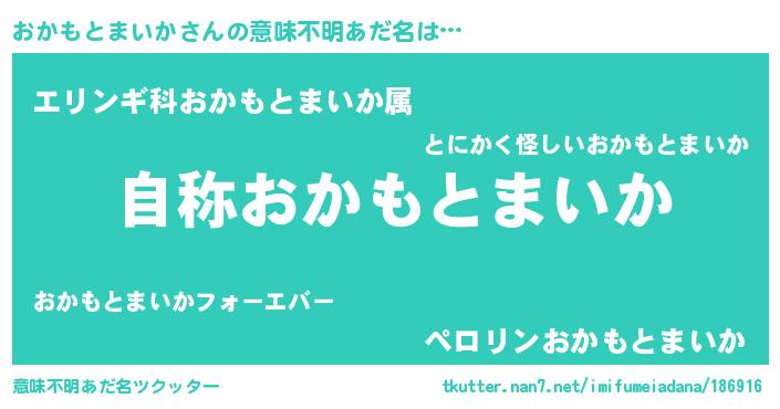 | 欧米人風あだ名 | 『おかもとまいか・ステッグマイヤー』 |