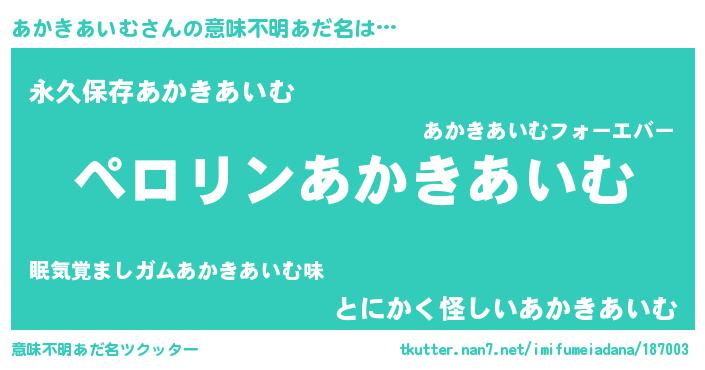 | 欧米人風あだ名 | 『あかきあいむ・ステッグマイヤー』 |