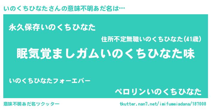 ヘコむあだ名 | 『いのくちひなた(遠い目)』『いのもー』 |