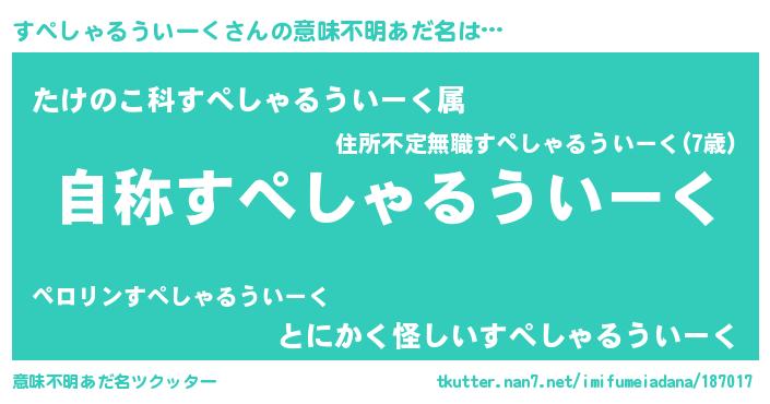| 女子向けラノベタイトル風あだ名 | 『すぺしゃるういーくなんてお断りですっ。』 |