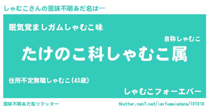 | 男性向けラノベタイトル風あだ名 | 『転生したらしゃむこだった件』 |