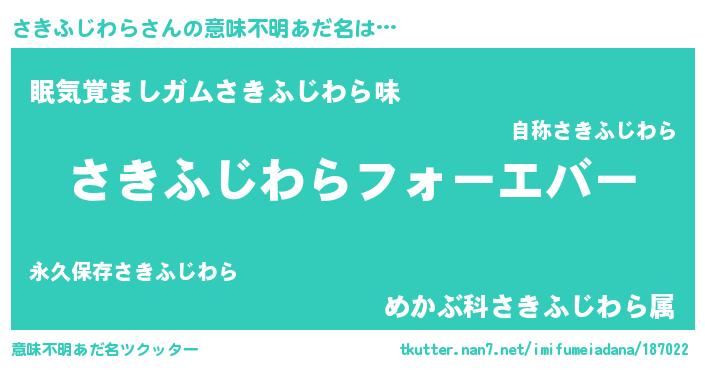 | 欧米人風あだ名 | 『さきふじわらクリステル』 |