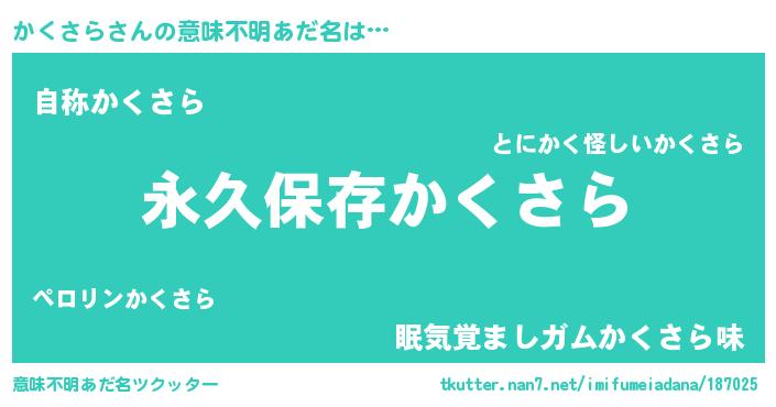 | 胡散臭い通販商品みたいなあだ名 | 『来世でも幸せになれる健康食品…その名も「かくさら」』 |