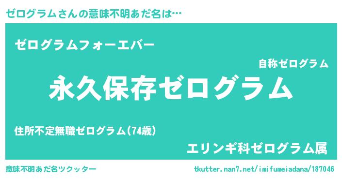 | 伝説のあだ名 | 『古より伝わる吟遊詩人ゼログラム』 |