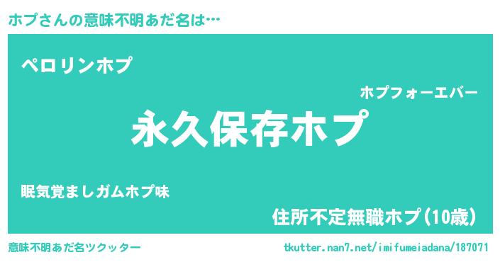 | 胡散臭い通販商品みたいなあだ名 | 『来世でも幸せになれる水素水…その名も「ホプ」』 |