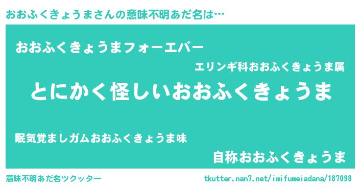 | 男性向けラノベタイトル風あだ名 | 『ダンジョンにおおふくきょうまを求めるのは間違っているだろうか』 |