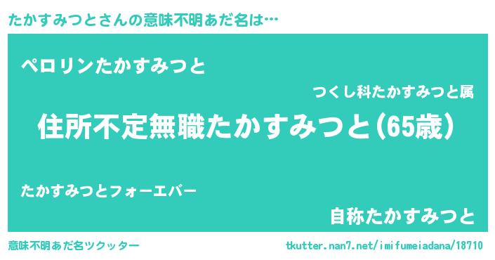 | ヒーロー風カッコイイあだ名 | 『仮面タカダー』『スーパータカスミツト』 |