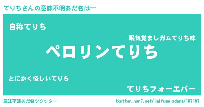 | 男性向けラノベタイトル風あだ名 | 『てりちに滅ぼされるだけの簡単なお仕事です』 |