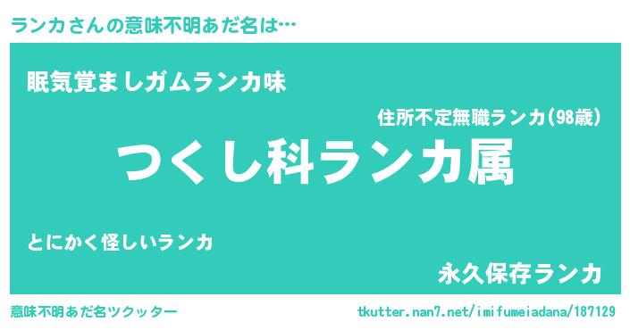 | ヘコむあだ名 | 『ランカ(笑)』『ランっぺ』 |