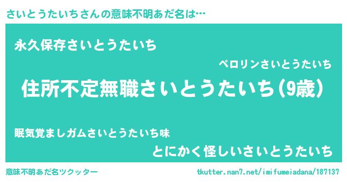 | ヘコむあだ名 | 『さいとうたいち(笑)』『さいを』 |