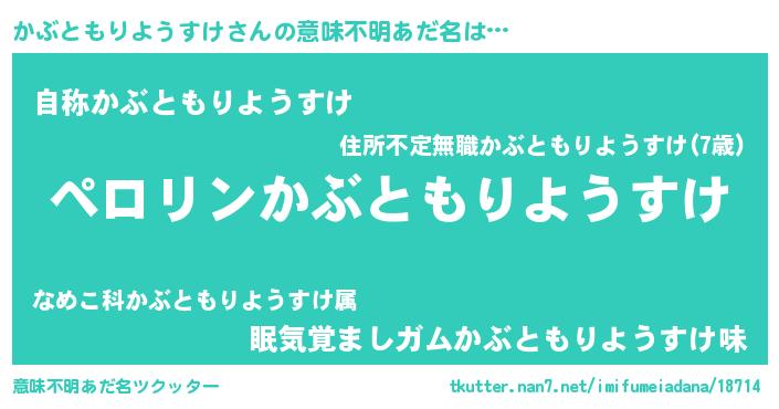 | 欧米人風あだ名 | 『かぶともりようすけ・ステッグマイヤー』 |