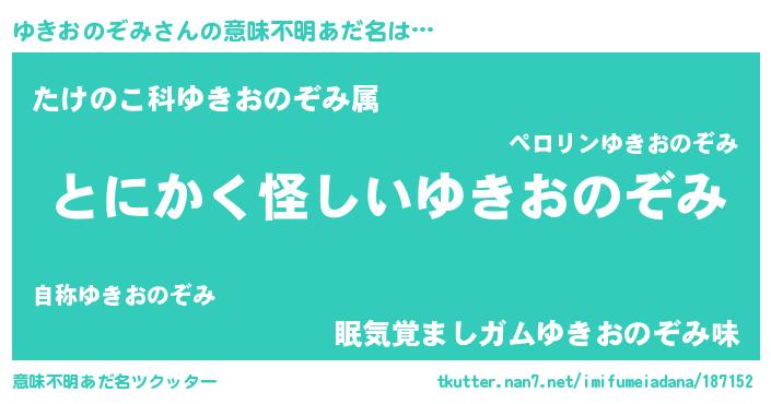 | ポケモン風あだ名 | 『ヒユキオノゾミ』『ユキキング』 |
