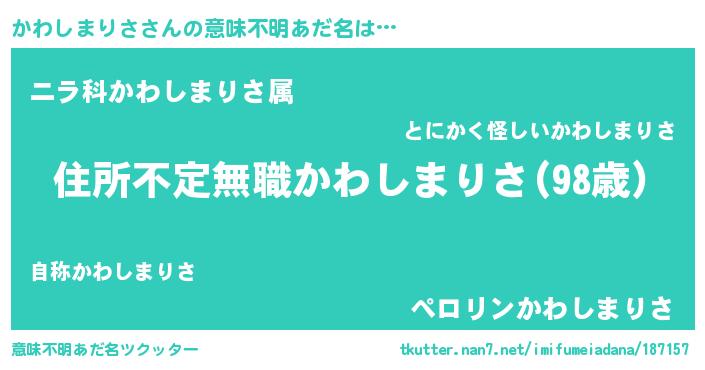 | ヒーロー風カッコイイあだ名 | 『仮面カワダー』『スーパーカワシマリサ』 |