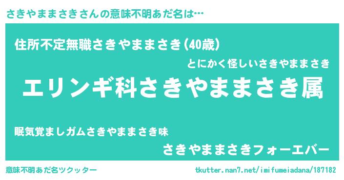| 欧米人風あだ名 | 『さきやままさき・ステッグマイヤー』 |