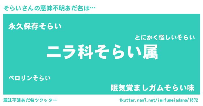 | ピコ太郎風あだ名 | 『ピコソ郎』『ソソ太郎』『ソラ八郎』 |