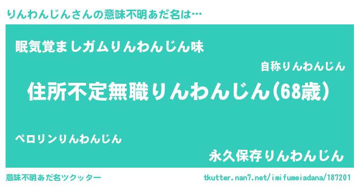 | 料理風あだ名 | 『りんわんじんのカルパッチョ風』 |