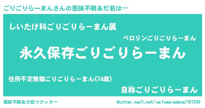 | ヘコむあだ名 | 『ごりごりらーまん(遠い目)』『ごりぷりん』 |