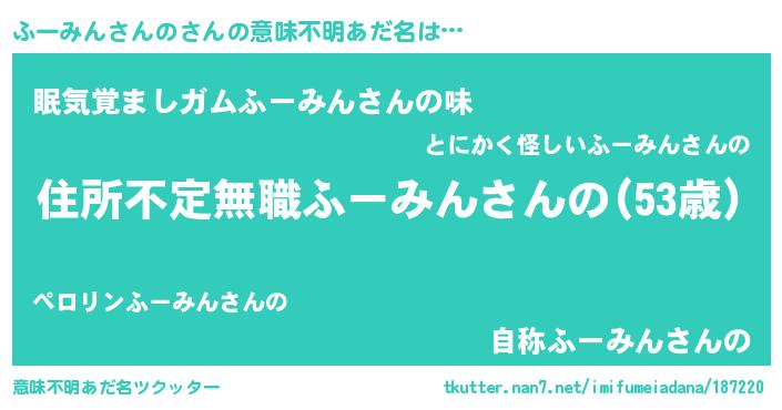 | 料理風あだ名 | 『ふーみんさんののカルパッチョ風』 |