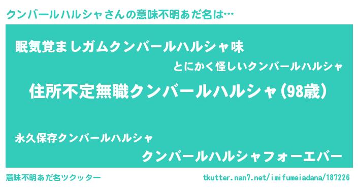 | 胡散臭い通販商品みたいなあだ名 | 『あなたにだけ特別に提供する世界で10本だけ現存している希少なブランデー…その名も「クンバールハルシャ」』 |