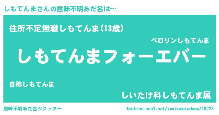 | 男性向けラノベタイトル風あだ名 | 『やはりしもてんまの青春ラブコメはまちがっている 』 |