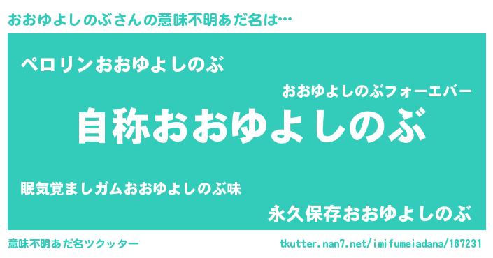 | 肩書あだ名 | 『おおゆよしのぶ総統』 |