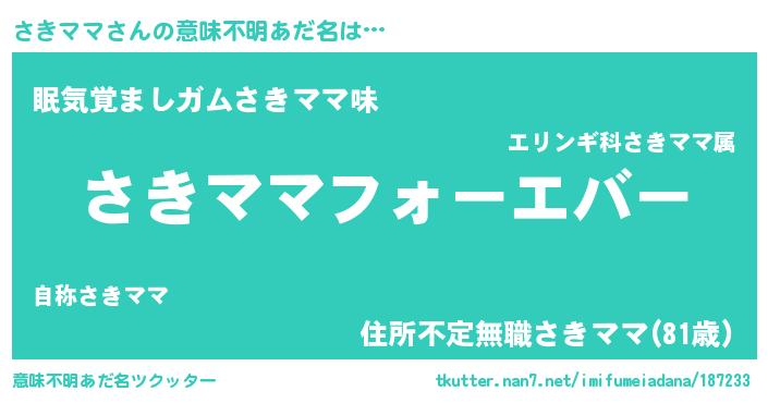 | 欧米人風あだ名 | 『さきママクリステル』 |