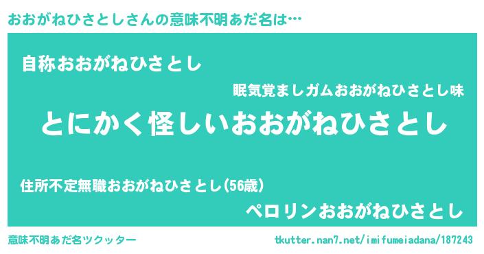 | 欧米人風あだ名 | 『ウサインおおがねひさとし』 |