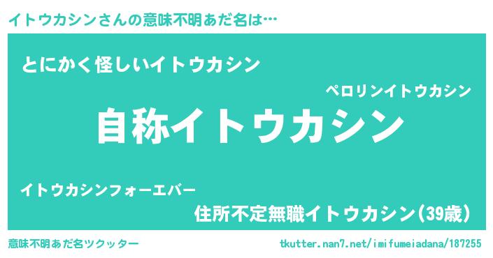 | ポケモン風あだ名 | 『イトセウス』『ヒイトウカシン』 |