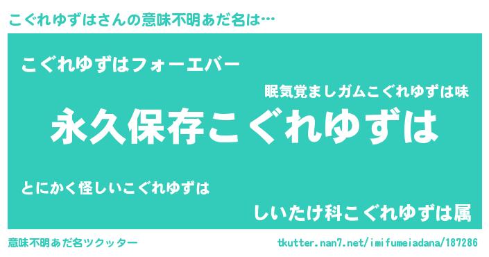 | 伝説のあだ名 | 『古より伝わる吟遊詩人こぐれゆずは』 |