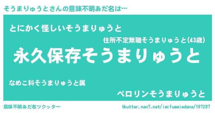 | ヘコむあだ名 | 『そうまりゅうと(苦笑)』『そうお』 |