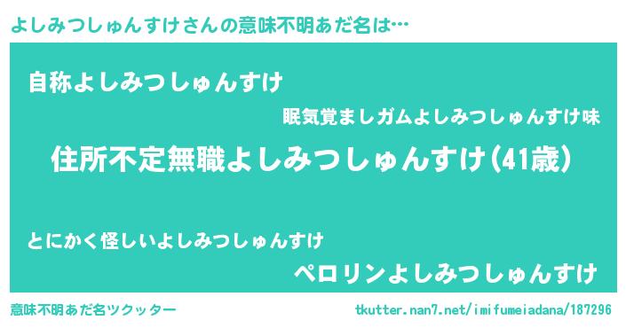 | 男性向けラノベタイトル風あだ名 | 『この素晴らしい世界によしみつしゅんすけを!』 |