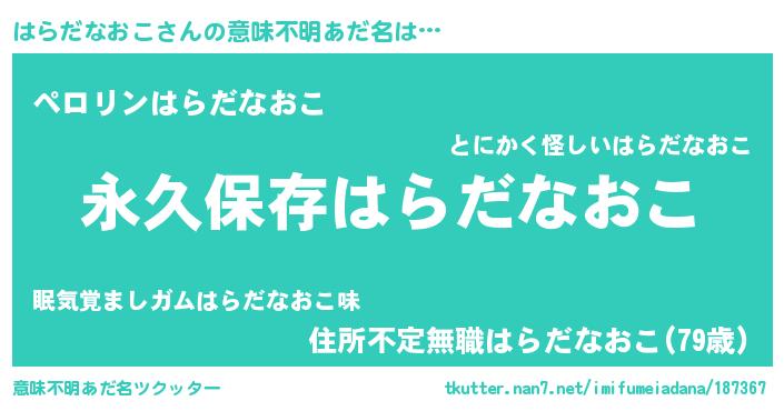 | 男性向けラノベタイトル風あだ名 | 『はらだなおこに滅ぼされるだけの簡単なお仕事です』 |