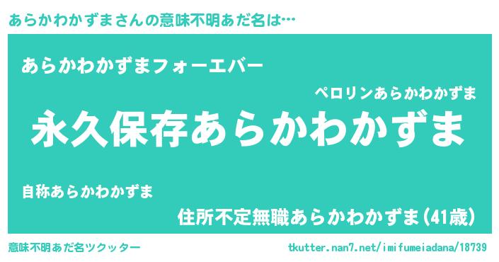 | 伝説のあだ名 | 『古より伝わる吟遊詩人あらかわかずま』 |