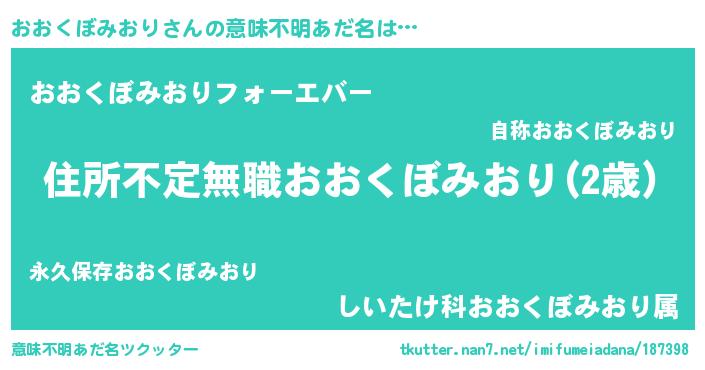 | 男性向けラノベタイトル風あだ名 | 『この素晴らしい世界におおくぼみおりを!』 |