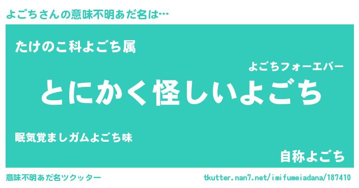 | ヘコむあだ名 | 『よごぷりん』『豆乳』『よごもー』 |