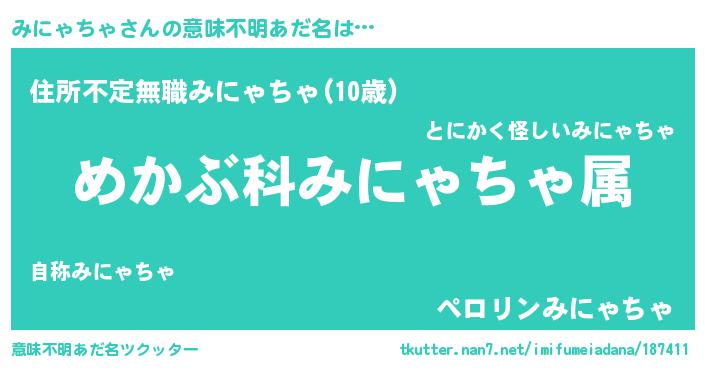 | 男性向けラノベタイトル風あだ名 | 『ミニャチャスレイヤー』 |
