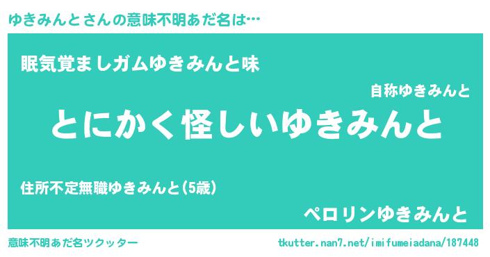 | ポケモン風あだ名 | 『ヒユキミント』『ユックウザ』 |