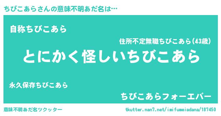 | 男性向けラノベタイトル風あだ名 | 『ちびこあらに滅ぼされるだけの簡単なお仕事です』 |
