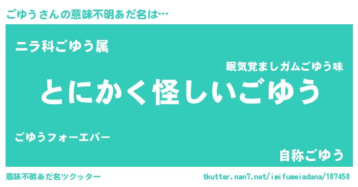| ポケモン風あだ名 | 『ヒゴユウ』『ゴユキング』 |