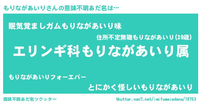 | 欧米人風あだ名 | 『もりながあいり・ステッグマイヤー』 |