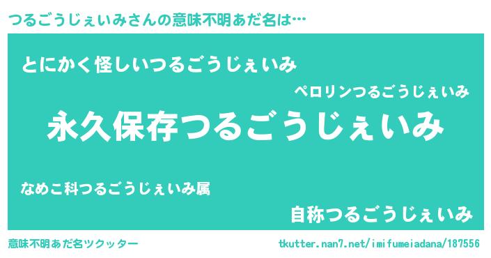 | 男性向けラノベタイトル風あだ名 | 『うちのつるごうじぇいみが世界を掌握している!』 |