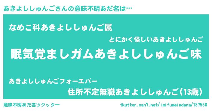 | 女子向けラノベタイトル風あだ名 | 『あきよししゅんご恋絵巻』 |