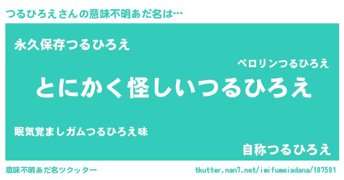 | 男性向けラノベタイトル風あだ名 | 『つるひろえの嫁は女の子じゃないと思った?』 |