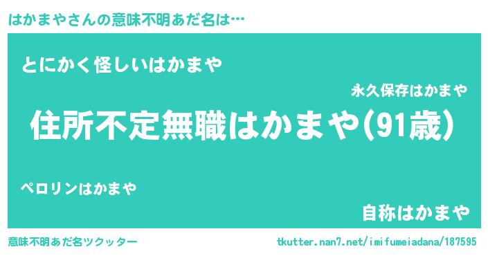 | 男性向けラノベタイトル風あだ名 | 『魔弾の王とはかまや』『はかまやの憂鬱』 |