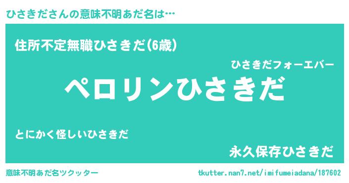 | 欧米人風あだ名 | 『マイケルひさきだ』 |