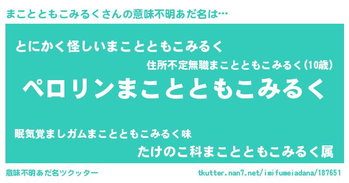 | 胡散臭い通販商品みたいなあだ名 | 『必ず成功するブレスレット…その名も「まことともこみるく」』 |