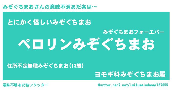 | 男性向けラノベタイトル風あだ名 | 『はたらくみぞぐちまおさま!』 |