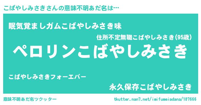 | ヘコむあだ名 | 『こばもー』『こばやしみさき(遠い目)』 |