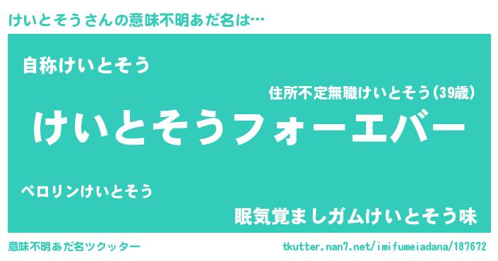| ヘコむあだ名 | 『酢こんぶ』『けいにゅー』『けいを』 |