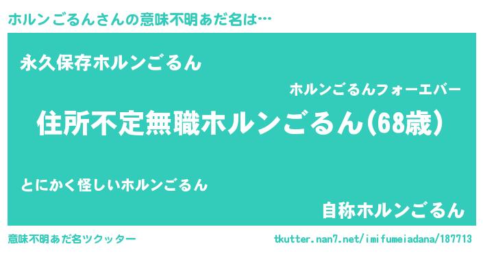 | 男性向けラノベタイトル風あだ名 | 『魔弾の王とホルンごるん』 |